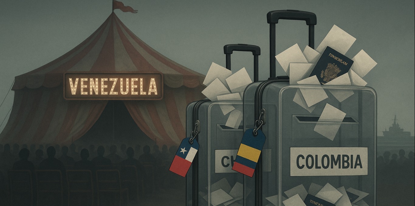 La política latinoamericana es el único circo donde el público ya sabe que los trucos son falsos, pero igual compra la entrada. En Venezuela se celebran elecciones que ni los fantasmas del Consejo Nacional Electoral se creen, mientras en Bogotá y Santiago los candidatos hacen lo que mejor saben: usar a los venezolanos en exilio como comodín de campaña. Es un espectáculo grotesco: basta pronunciar “Venezuela” en un mitin para que unos aplaudan como si vieran al Mesías y otros suden frío como si llegara la peste.