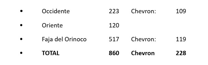La producción de Chevron mostró un leve aumento, aunque todavía 20 Mbpd por debajo de los niveles logrados bajo Licencia General 41. Las pequeñas variaciones en la producción, semana a semana, corresponden a la incorporación de pozos a la producción mediante actividades de trabajos de reparación, principalmente sin taladros de Ra/Rc, en las empresas mixtas PetroBoscán, PetroZamora y PetroIndependencia.