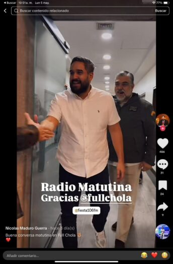 En el caso de Sarría, sea por error o diseño, la imagen que protegía su identidad se cayó, gracias a la publicación de Nicolás Maduro Guerra en TikTok, quien reseñó el recorrido que realizó en mayo por los pasillos del Circuito FM Center, cuando estaba en campaña electoral para la Asamblea Nacional.