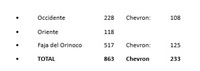 La producción semanal de crudo promedió ochocientos sesenta y tres mil barriles por día (863 Mbpd), distribuida geográficamente como sigue: