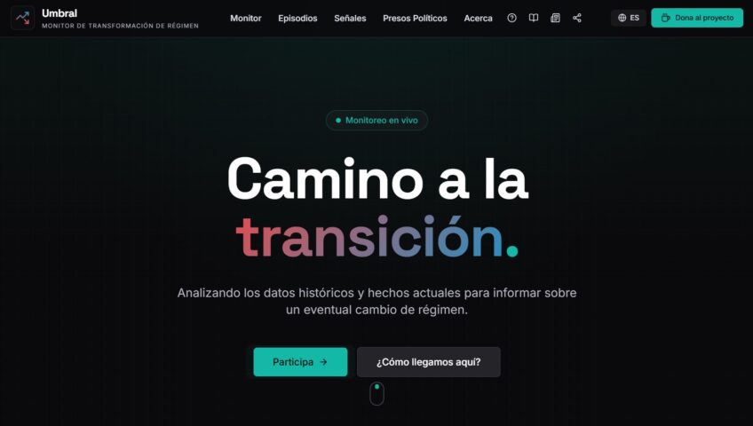 A partir del 3 de enero, Venezuela se ha convertido en un laboratorio pionero para medir, con señales y en tiempo real, cómo se produce la transformación del régimen político en este siglo. Desde Ciudadanía Sin Límites, junto a Code for Venezuela y el Dr. Pablo Hernández Borges, lanzan Umbral (umbral.watch) para convertir el “todo el mundo dice” en algo que se pueda mirar y seguir.