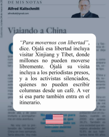 Su postura ante la influencia de China en la región es implacable, como lo demostró durante su paso en Panamá. Incluso en Guatemala, de los pocos países que no reconoce a la República Popular China y tiene relaciones con Taiwán, Barrett también siguió la misma línea inflexible.